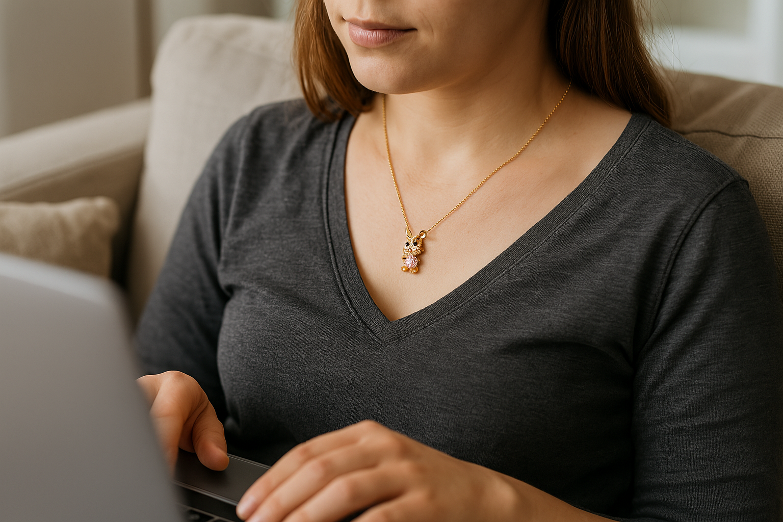Really cute pendant, though the chain is thinner than I expected. The bunny itself is charming and well-crafted.