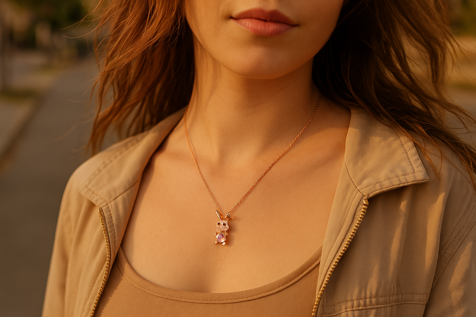 This necklace is more than just a piece of jewelry; it’s a cheerful reminder of the playful beauty of life. Its adorable design and sparkling gemstones create a look that’s both unique and memorable.