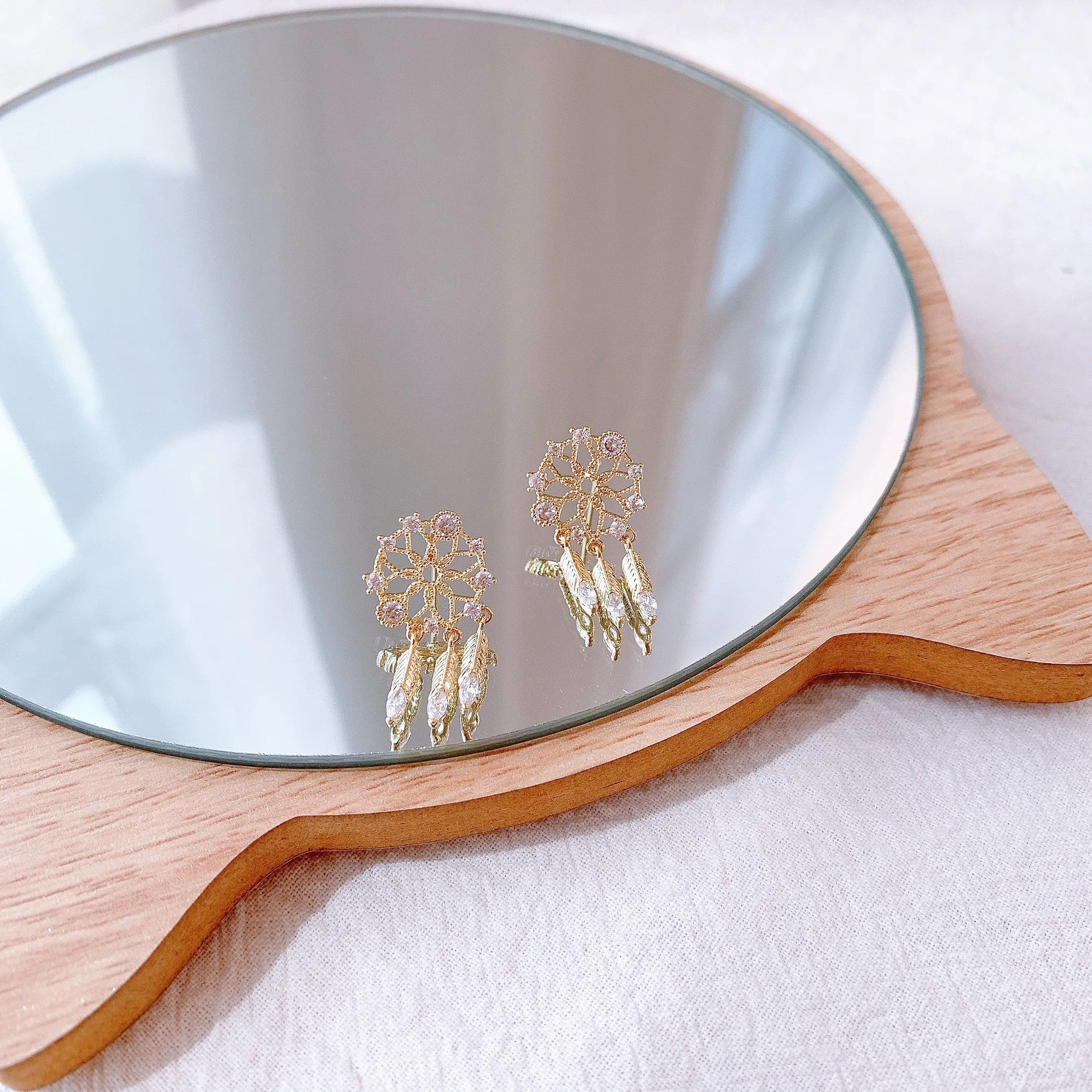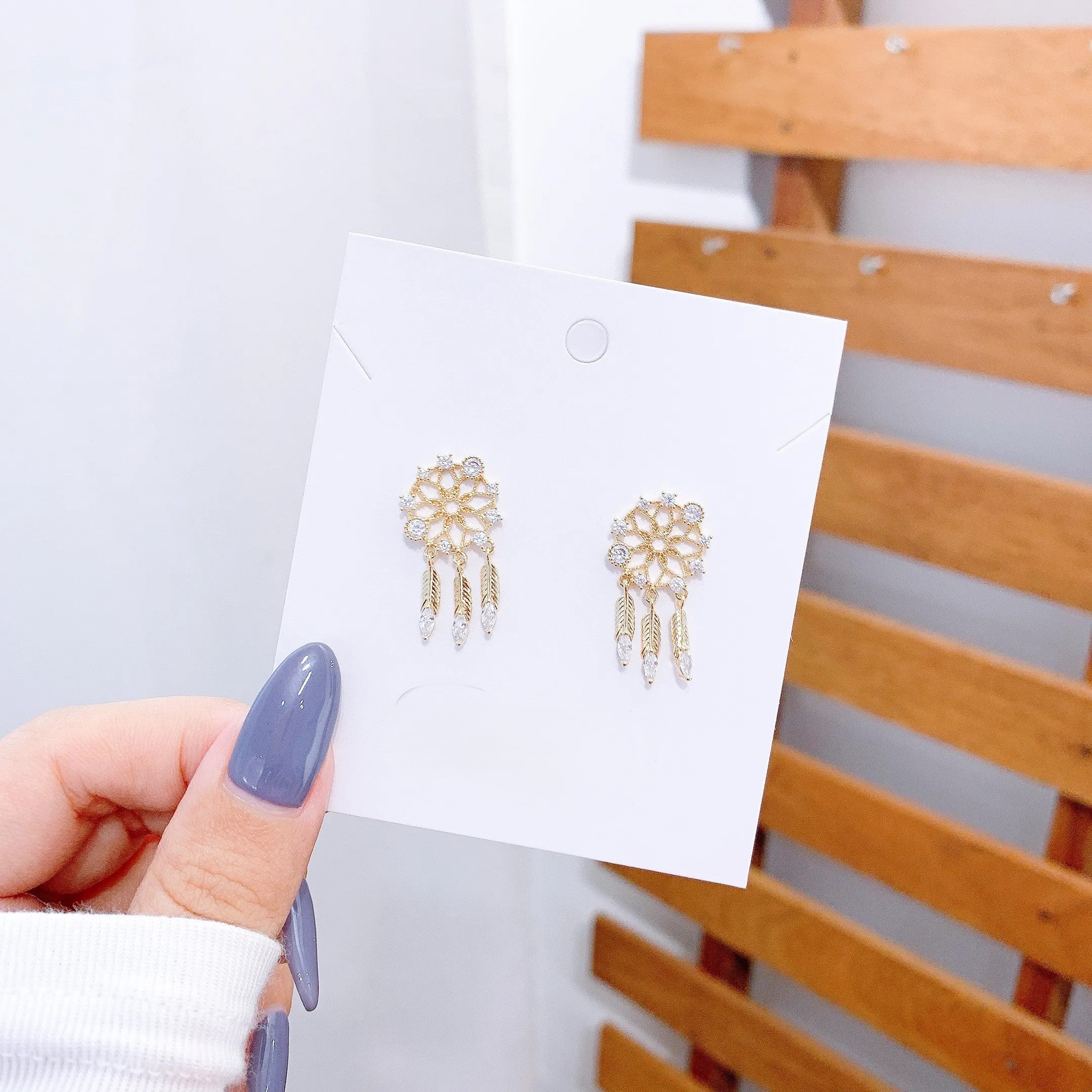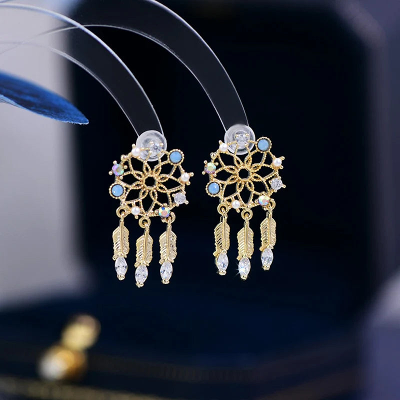 These 18K Gold Dreamcatcher Earrings are designed to capture the essence of elegance and spirituality. Featuring AAA cubic zirconia stones for dazzling brilliance and delicate feather charms, they offer a unique blend of symbolism and glamour. Made with a gold-plated copper alloy, they are both lightweight and durable, making them an ideal addition to any jewelry collection.