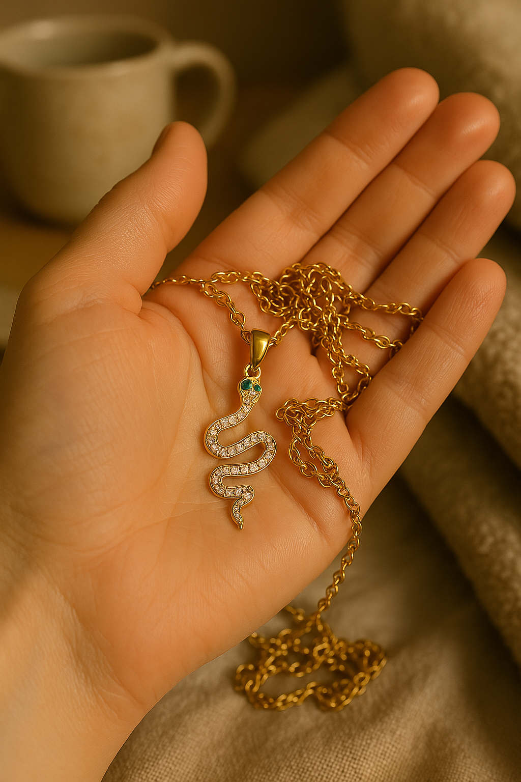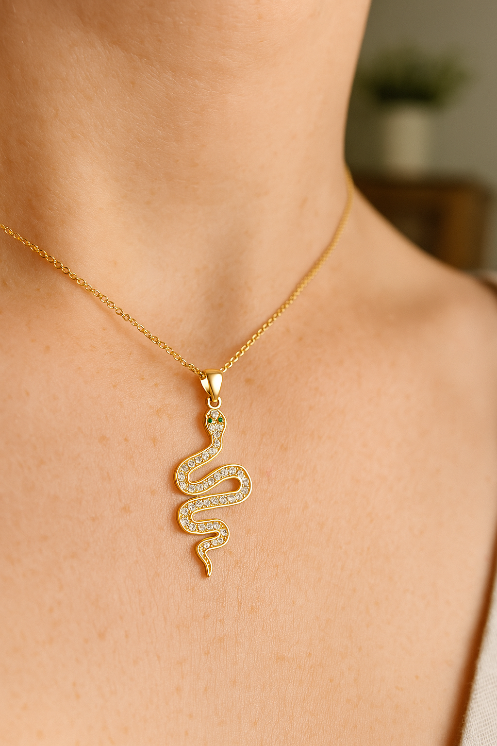 The Golden Serpent Charm Necklace is not merely an accessory; it's a piece of art that symbolizes grace and timeless beauty. It's designed for the discerning individual who loves to express their unique style through classic symbols and modern craftsmanship.