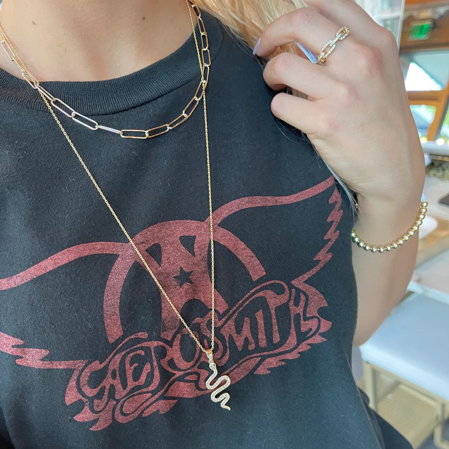 Perfect for layering! The chain is the right length to combine with other necklaces, and the snake pendant is just gorgeous.