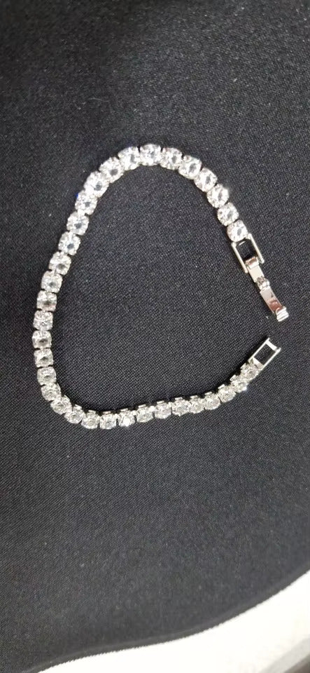 This Tennis Bracelet combines timeless design with everyday wearability. A continuous line of sparkling crystals catches light with every movement, while the sleek white gold setting provides a sophisticated backdrop.