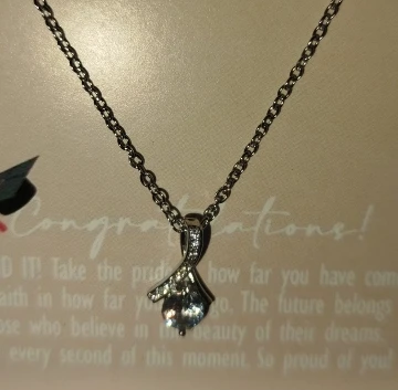 Beautiful necklace with a heartfelt message. It came in a lovely box, ready to gift, which was very convenient.