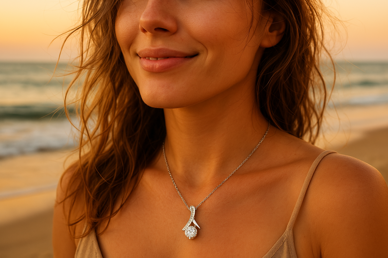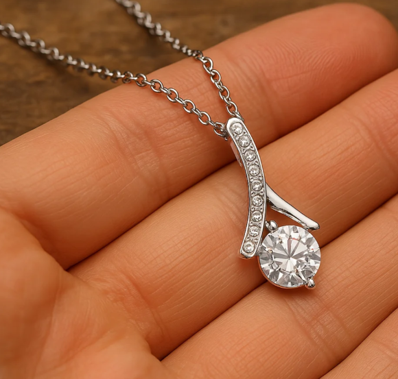 Let love shine through every detail with this Charming Soulmate Necklace — designed to be more than just jewelry. The curved setting, lined with glittering stones, cradles a radiant solitaire crystal, symbolizing strength, beauty, and an unbreakable bond.